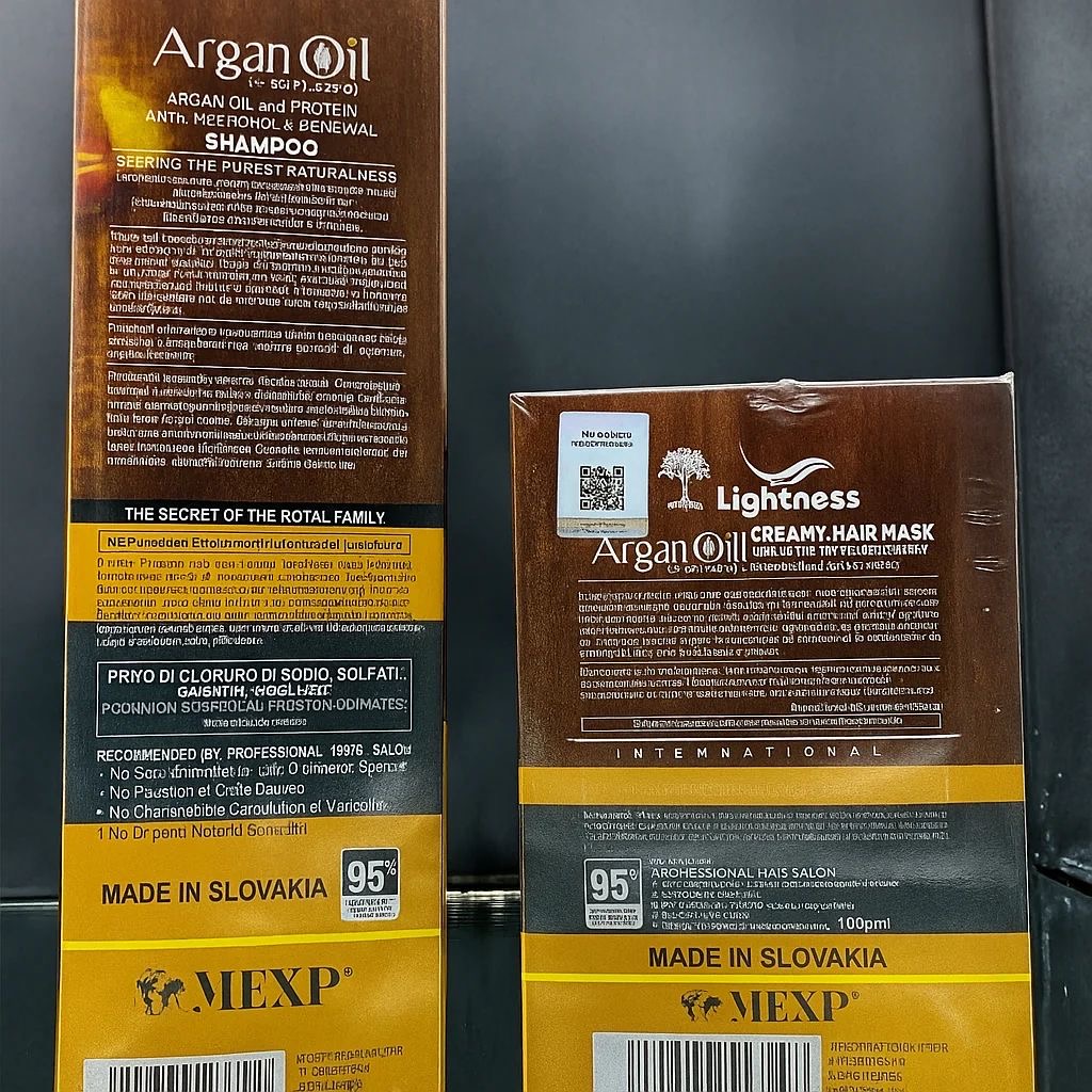 شامپو و ماسک کرمی Argan Oil پروتئین و روغن آرگان مراکشی، محصول حرفهای ضد ریزش و بازسازی مو، ساخت اسلواکی.
